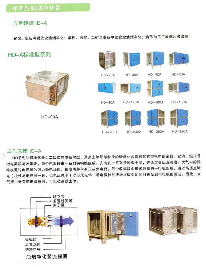 宾馆、饭店等餐饮业油烟净化;学校、医院、工矿企事业单位食堂油烟净化;食品加工厂油烟污染治理。