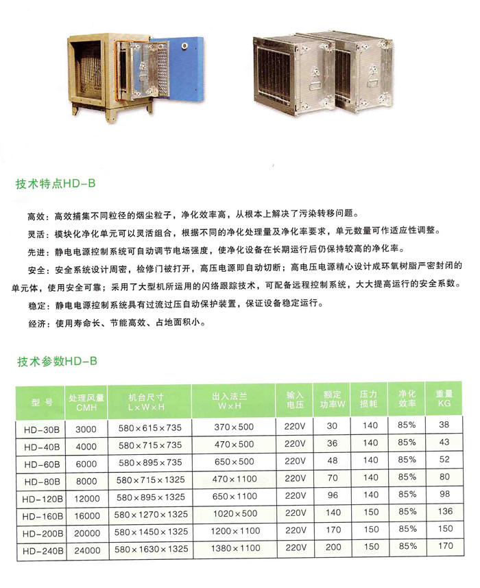 HD-D组合式油烟净化机为风机箱和油烟净化器合二为一的组合型产品。该机组自带风机,改变了传统油净化器不带引风机,用户需重新寻找厂家采购的烦恼。