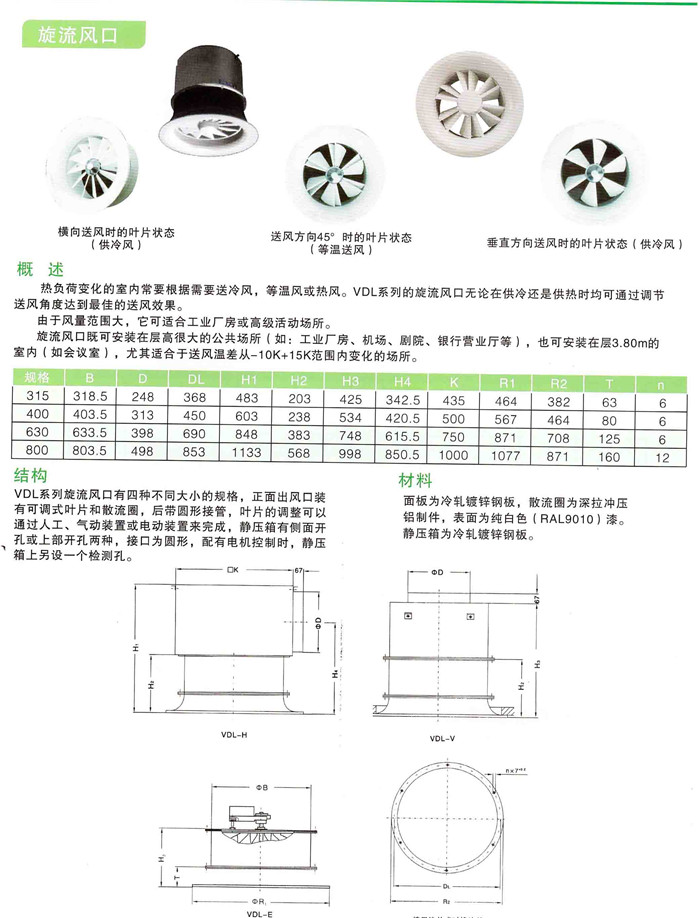 热负荷变化的室内常要根据需要送冷风,等温风或热风。VDL系列的旋流风口无论在供冷还是供热时均可通过调节送风角度达到最jia的送风效果。