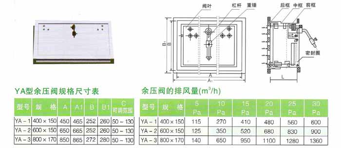YA型余压阀共有两种规格,具体结构见图、尺寸见表。