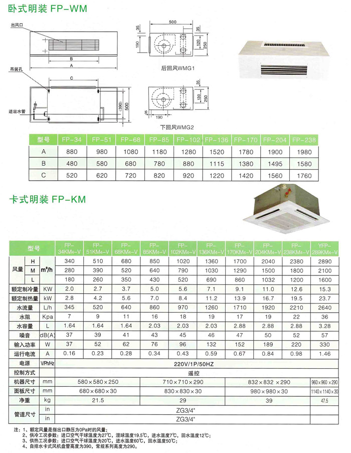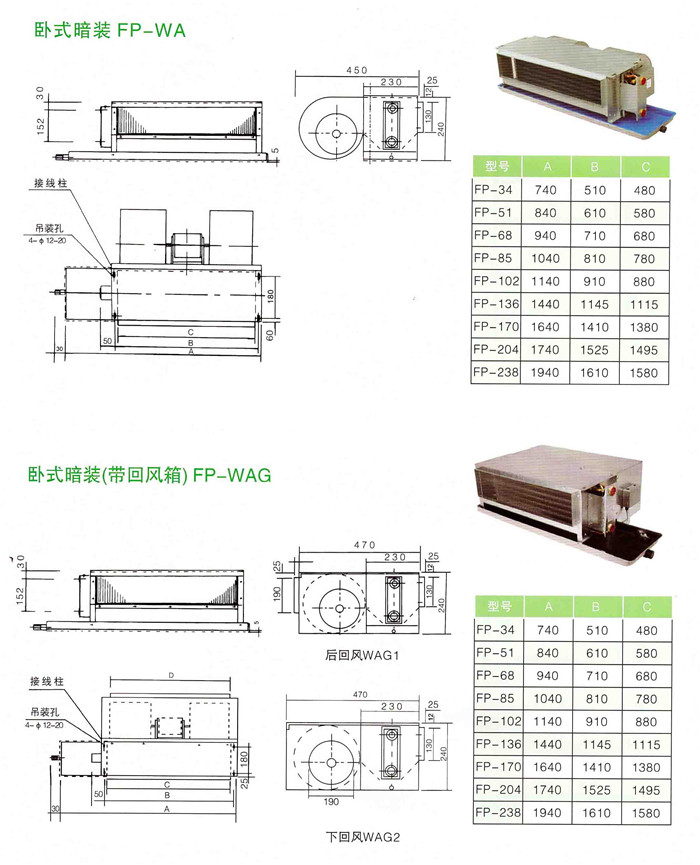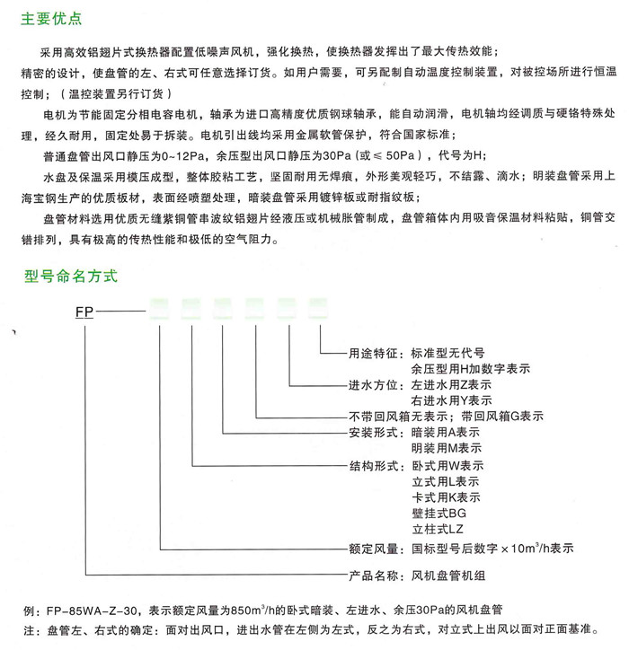 FP系列风机盘管吸收了国内外同类产品的先进强项技术,依据国家相关标准,并经反复试制和测定,高效率地完成了一系列的技术设计改进,故而性能优越、用途广泛、品种齐全、效率高、故障少、噪声低,其品种有卧式暗装、卧式明装、立式暗装、立式明装、卡式机组等系列,与新风机组配套后广泛应用宾馆、医院、办公用房、高级会议厅、展览厅等低噪声场所,是集中式空调系统理想的末端装置。