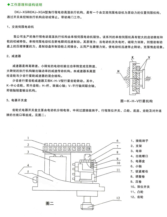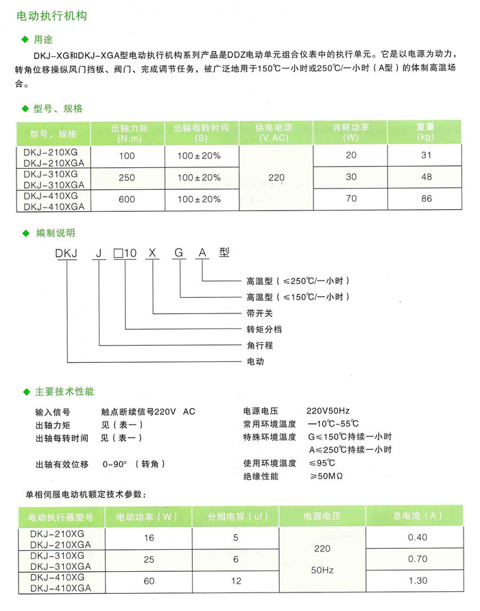 用途:DKJ-XG和DKJ-XGA型电动执行机构系列产品是DDZ电动单元组合仪表中的执行单元。它是以电源为动力,转角位移操纵风门挡板、阀门、完成调节任务,被广泛地用于1500C一小时或2500C/一小时(A型)的体制高温场合。