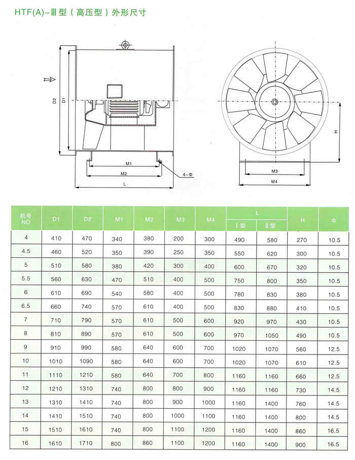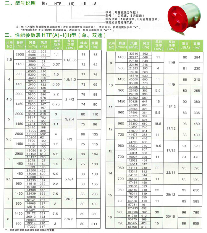 HTF轴流排烟风机设计独特,高温电机全封闭内置,配设专门的电机冷却系统,采用CAD软件多目标优化设计的轴流和混流叶轮结构,通过多速驱动形式,达到一机两用(即常用送排通风和消防使用时高温排烟),配设电控箱后可远程自动控制。具有耐高温性能优良、效率高、体积小,安装简便(水平、垂直、吊装均可)等优点,广泛应用于高层建筑、烘房、地下车库、地铁、隧道等场合消防排烟和送排通风。按GA211-2009《消防排烟风机耐高温试验方法》标准条款4.4.3.7测定,能在280。C高温条件下继续运行30分钟以上无异常,已被全国各大城市消防部门认可采用。相关产品已通过国家3C强制认证。